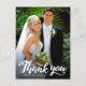 Whimsical handwritten "Thank you" script superimposed over your wedding photo. Matches the "Save the Date" and "Save our Date" script. Personalise by adding your details, thank you message and vertical front photo as well as a horizontal photo on the back. Use sample message or write your own message. This whimsical and elegant thank you card is perfect for weddings, graduations and similar events.