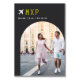 Add a special finishing touch to your wedding reception tables with these custom photo table number cards. Name each table after a memorable travel destination and add a photo and the destination name to these unique table cards. Your photo is aligned at the bottom right in an arched layout, with the location's airport code, destination, initials and wedding date at the upper left, adorned with an airplane icon illustration.