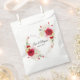 This wedding treat favour bag is shown in white with a lovely multi colour flowers and red roses print with a heart shape frame.