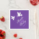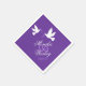 Simple two white peace doves with purple ribbons wedding dinner or wedding party paper napkins A great personal addition to your wedding tables. Personalise with your names. Design and graphic art by Sarah Trett.