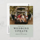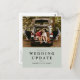 Need to cancel or postpone your wedding due to an unfortunate circumstances? Disasters like pandemics, natural disasters, disease, death can deal a crushing blow to a big day. Send a notice to friends and family with this simple and tasteful postcard with a single photo. The back includes a large block of custom text with suggested wording. There is also room for you to sign it. The sage green and black colour scheme can be edited by clicking "customise further." Also works for other events that need to be postponed like graduation parties, proms, fundraisers, galas, family reunions and more. Great for covid brides, coronavirus couples and more.