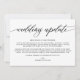 Modern simple wedding update announcement card. Design features calligraphy script ''wedding update'' and details in trendy capital lettering.