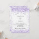 A white background. Decorated with violet, lavender coloured faux glitter. Personalise and add your names and details.