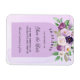 A modern and elegant Save the Date for a wedding. Watercolored violet, lavender background, and an arch frame. Decorated with violet and purple flowers. Personalise and add a date and names. The text: Save the Date is written with a large trendy hand lettered style script.