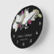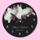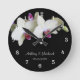 A wedding wall clock makes a great gift for the newlyweds. This wedding clock features beautiful yellow orchids with fuchsia centres on a black background. Below the orchids is a place for you to personalise the clock with the name of the bride and groom and the wedding date. A beautiful wedding clock gift for that very special couple on their wedding day. Copyright Kathy Henis