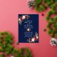 Modern Elegant Watercolor Burgundy Floral Wedding Invitation includes burgundy roses, pink roses, red roses and botanical greenery. Gold Foil Frame. Navy Blue Background. Photo Back.