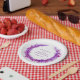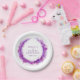 Wedding watercolor modern purple grass art wreath with bride and grooms names paper plates. A great personal addition to your wedding tables or for after wedding drinks or a wedding after party. Personalise with your bride and grooms names and wedding date. Perfect for a beach or purple wedding, engagement, or anniversary. Watercolor painting and design by Sarah Trett. www.sarahtrett.com for www.mylittleeden.com