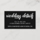 Here's a handy enclosure to include with your Engagement Announcement, Engagement Party or Save the Date cards when you mail those out. Or just have them on hand for when you see wedding guests in the months leading up to your big day. This is a pretty white on black detail card insert with your wedding website address on one side and a reminder of your date on the other. The ideal accessory lets everyone stay in the loop as your wedding season progresses and plans unfold. The card features a modern calligraphy script font that was used to create a graphic depicting the words "wedding details". All other text items can be updated as you see fit. The background is an editable black; you can change that to any colour you prefer! // 89 //