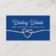 Minimalist, modern, trendy royal blue wedding website enclosure card with gold rope heart and simple calligraphy script.