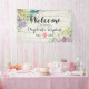 Wedding Welcome Banner Templates - Elegant lovely Watercolor Succulent Plants on White Rustic Wood Background.
