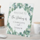 White background. Decorated with watercolored eucalyptus greenery. With the text: Welcome to The Wedding of. Personalise and add your names.