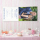 This white banner features a photo of the happy couple. Elegant blue script and bold font completes this wedding welcome sign. To edit the text and change the photo click on the personalise button.