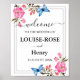 Wedding Welcome Sign - Pink Rose Gray Butterflies