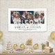 Welcome wedding guests to your ceremony or reception with an elegant custom 3 photo collage banner. Pictures and all text are simple to personalise. (IMAGE PLACEMENT TIP: An easy way to centre a photo exactly how you want is to crop it before uploading to the Zazzle website.) The modern minimalist black and white design features three images of your choice, chic vintage typography, and customisable messages that read "welcome to our happily ever after" and "thank you for celebrating with us." This wedding sign is a stylish way to share engagement pictures while adding a personalised touch to your special day decorations. Congratulations to the bride and groom!