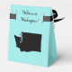 These sweet little map favour boxes are perfect for giving to your guests when they check into their hotel. Fill with little treats they can enjoy before the festivities begin. Or, send them home from the reception with a midnight snack. You may change the background colour to match your wedding theme.