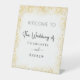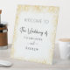 A white background, decorated with faux gold glitter sparkles. With the text: Welcome to The Wedding of. Personalise and add your names.