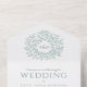 Muted sage green hand-drawn growing leaf botanical art wedding all-in-one invitation. Personalise this detachable reply wedding invitation with your own wedding ceremony details, as meal options on your replies. Simple green leaf design circling your own monogram initials. Other colours and matching wedding items available. © Original leaf drawing and design by Sarah Trett for www.mylittleedenweddings.com on Zazzle.