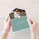 Muted sage green hand-drawn growing leaf botanical art add your own couples photo inside wedding all-in-one invitation. Personalise this detachable reply wedding invitation with your own wedding ceremony details, photo, monogram initials, and meal options on your detachable reply cards. Simple green leaf design and monogram initials circle of leaves. Other colours and matching wedding items available. © Original leaf drawing and design by Sarah Trett for www.mylittleedenweddings.com on Zazzle.