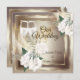Wedding White Rose Champagne Gold Bronze Invitation