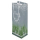 Winter wedding pine trees by the lake green grey art thank you favour wine gift bags. Winter wedding green trees, grey sky and white snow covered pine trees by the lake with gouache and watercolor art bags. Personalise with your own wedding names. Ideal for a Christmas or lakeside winter wedding favours. © Original painting and design by Sarah Trett www.sarahtrett.com for www.mylittleedenweddings.com