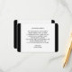 Small white, custom enclosure cards for weddings and events to ask guests to give money in leu of presents. Black printed text over plain white paper and black border can be used to print a "wishing well" message asking for money in place of gifts. Enclose with invitations to a shower, engagement party, wedding or any event where ordinarily a gift would be appropriate. Wishing well wording sample is easy to change. Two hearts printed on reverse can be removed.