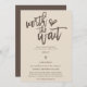 For when circumstances mean that sadly it is necessary for you to reschedule the date of your wedding, this is a convenient way to let your guests know your change of plans and new date as soon as possible. This typographical design has elegant brown set script at the top Worth the Wait with a heart motif. The rest of the text in brown, you can easily personalise, on a cream background and coordinating brown on the back. Text and background colours on both sides can be changed if you wish via Customise Further option.