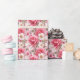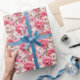 Wrapping paper is shown with a lovely pink and white coloured floral peony and rose print.