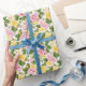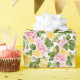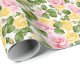 Wrapping paper is shown with a lovely pink and yellow roses floral print.