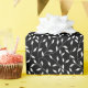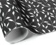 Wrapping paper is shown with a lovely black and white floral leaf vine print.