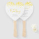 Wedding ceremony program fan modern dab watercolor sunshine yellow art to white hued wedding ceremony program hand fan. Ideal for a tropical or summer wedding. Other matching items available. Original abstract art painting and design by www.mylittleedenweddings.com on zazzle.