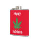 Weed Leaf Christmas Happy Holidaze flask. Cool Christmas gift large, green weed leaf on red background with white shaky text that reads, "Happy Holidaze." Cool gift for hip person.