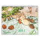 Original artwork of bunnies around the rabbitry decorate each page of this colourful 2011 calendar.