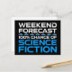 Weekend Forecast - 100% Chance of Science Fiction. Funny sci-fi lover gift idea for a man, woman, teens or kids who love science fiction, outer space and exploring the universe, and is a scifi geek or nerd. Do you love science fiction books, sci-fi tv shows or sci-fi movies? If you’re a sci-fi fan, and have a sense of humour, then this design is perfect for you!