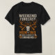 Get ready for the weekend with this bold and humourous hunting-themed t-shirt! Featuring the phrase "WEEKEND FORECAST: HUNTING WITH A CHANCE OF DRINKING," this rugged design showcases a striking deer skull with antlers, crossed rifles, and a target symbol—perfect for dedicated hunters. The addition of two beer mugs adds a fun twist, making it the ideal shirt for those who enjoy mixing outdoor adventures with good times. Printed in warm orange and beige tones on a deep black background, this high-contrast design stands out at the hunting lodge, backyard BBQ, or casual gatherings. It’s a must-have for outdoor enthusiasts who appreciate the thrill of the hunt and the joy of celebration!