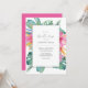 Weekend getaway invitations feature tropical flowers and palm leaves in shades of pink, orange and green. Use the template fields to add your custom details. Order printed cards online or printable invitations. An elegant choice for a girl's birthday weekend or bachelorette weekend with a tropical beach themes. To see more designs like this visit www.zazzle.com/dotellabelle
