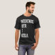 I give wanted to give this a 4 instead of a 5 because these Basic DARK T0shirts run unexpectedly SLIM or Narrow. Which is great if you do not have a potbelly, but I have a paunch. It isn't the shirt's fault that I've got a beer belly. The design and shirt itself is a quality cotton shirt. The color is more of a deep purple, but still a very pretty color. The Basic DARK T-shirts run a bit SLIMMER than the Basic Ts. The neck is a fraction narrower (or seems to be narrower) also. I'm a paunchy middle-aged woman and my neck is 12 inches (31cm) thick and the neckline fell about the same as in the photo of the man, and I had the desire to tug it a bit. So if you're a thick necked man or like loose shirts, be aware these are slimmer shirts. Once I get rid of my lockdown paunch it'll look great. The shirt washed well in cold water with no apparent bleeding. We don't have a dryer, so it hung dry. Did not shrink. Love the colors and the design. The design looks smaller on my shirt than it does on the model on-line. But still, it looks good on the shirt. The printing looks as it does on the model, just the size seems fractionally smaller. Washed garment in cold water, hung dry and design appeared unaffected.