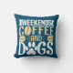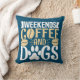 Dog lovers who also love coffee and weekends will love this design on bags, mugs, T-shirts, and more with text of tan and white with coffee beans and a dog paw print that reads Weekends Coffee and Dogs!