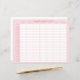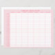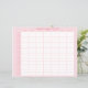 This medication tracker features a pink background with a grid that includes times by the hour on the left side and days of the week on the top side. You can personalise with your name.