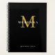 Chic black undated weekly monthly planner. Featuring personalised monogram with name in gold and white.