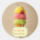 Add a scoop of joy to your gifts with this adorable round sticker featuring a colourful triple-scoop ice cream cone topped with sprinkles and a cherry — now with a charming From/To label for easy personalisation!