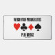Showcase your wry probabilistic bridge player side with this desk mat featuring the four card suits along with the bridge recommendation saying "Weigh Your Probabilities Play Bridge". Do a double-take with a dose of sound bridge advice the next time you play bridge with this desk mat.