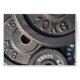 Photograph of several weightlifting plates with customisable text, "No Excuses."