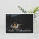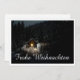 Die Karte zeigt eine stimmungsvolle, winterliche Szenerie mit einer kleinen, beleuchteten Holzhütte inmitten eines verschneiten Waldes. Die warme Lichtquelle im Inneren schafft einen schönen Kontrast zur dunklen, friedlichen Umgebung. Der elegante „Merry Christmas“-Schriftzug in Weiß verleiht dem Motiv eine festliche Note. 🎄✨