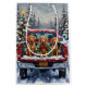 Celebrate the holiday season with this stunning Weimaraner Christmas design! This elegant scene features three sleek, silver-gray Weimaraners riding happily in the back of a classic red pickup truck, nestled in a beautiful snowy winter forest. The vintage truck is adorned with a festive Christmas wreath, twinkling with red and gold ornaments and warm lights. Gentle snowflakes fall around the scene, and a decorated Christmas tree in the background adds to the magical winter wonderland. This design perfectly captures the joyful spirit of the holidays, making it a wonderful Christmas gift for any Weimaraner owner, dog lover, or anyone who appreciates festive and sophisticated dog art.
