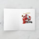 Weimaraner stands with chin on Santa's shoulder while Santa looks for him in Santa's book of good and bad names. This little Weimaraner puppy assures Santa he believes and has been a good dog. The inside of this card has Santa hugging the puppy and assuring him he is a, "Good Doggie."