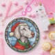 Elevate your holiday decor with this exquisite stained glass Christmas ornament. Crafted with meticulous attention to detail, this ornamental masterpiece captures the essence of canine charm. Its vibrant colours and intricate design evoke a sense of warmth and joy, adding a touch of elegance to your tree. Handcrafted with love, this timeless piece is a perfect gift for dog lovers and enthusiasts alike. A must-have for Christmas enthusiasts, stained glass ornaments, pet-themed decorations.