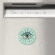 Blue eye magnet with a vector illustration of an abstract eye with make-up and beautiful long eyelashes. The eyelashes extend into dots and white and blue dots cover everything. The whole image is in shades of blue.