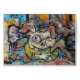 crazy stuff as street art sprayed on a wall - does'nt look like a happy guy