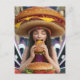 Weird Surreal Girl with a Cheeseburger Hat Scifi Postcard