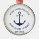 Custom Boat name or Family name, Welcome Aboard, nautical anchor navy blue and white Christmas metal Ornament.